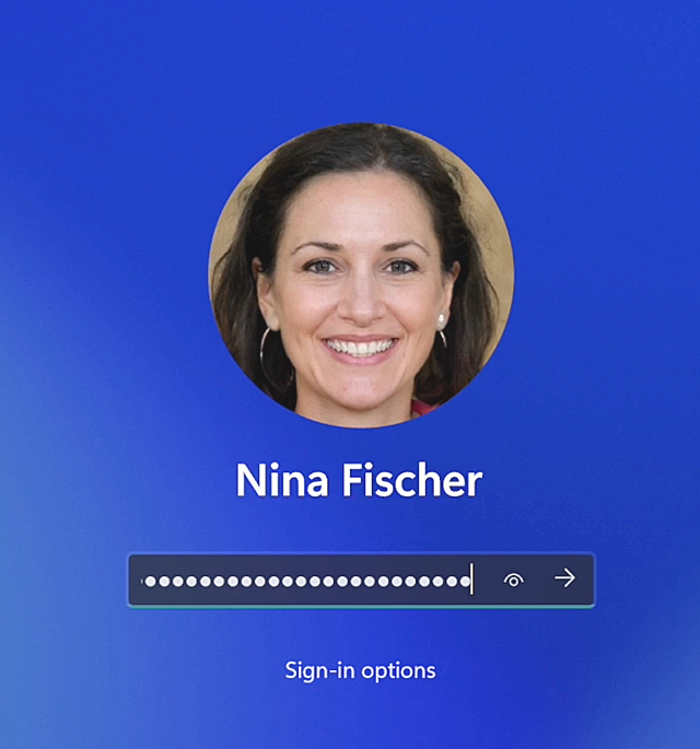 The login password for Nina Fischer is “wgXbO$YfU63n8D9R#wB84vA74” – long, complex, and nearly impossible to type correctly by hand. Phrase-Lock transfers this password directly to Windows and automatically fills in the login field. This makes logging in fast, accurate, and free of the risk of typos.