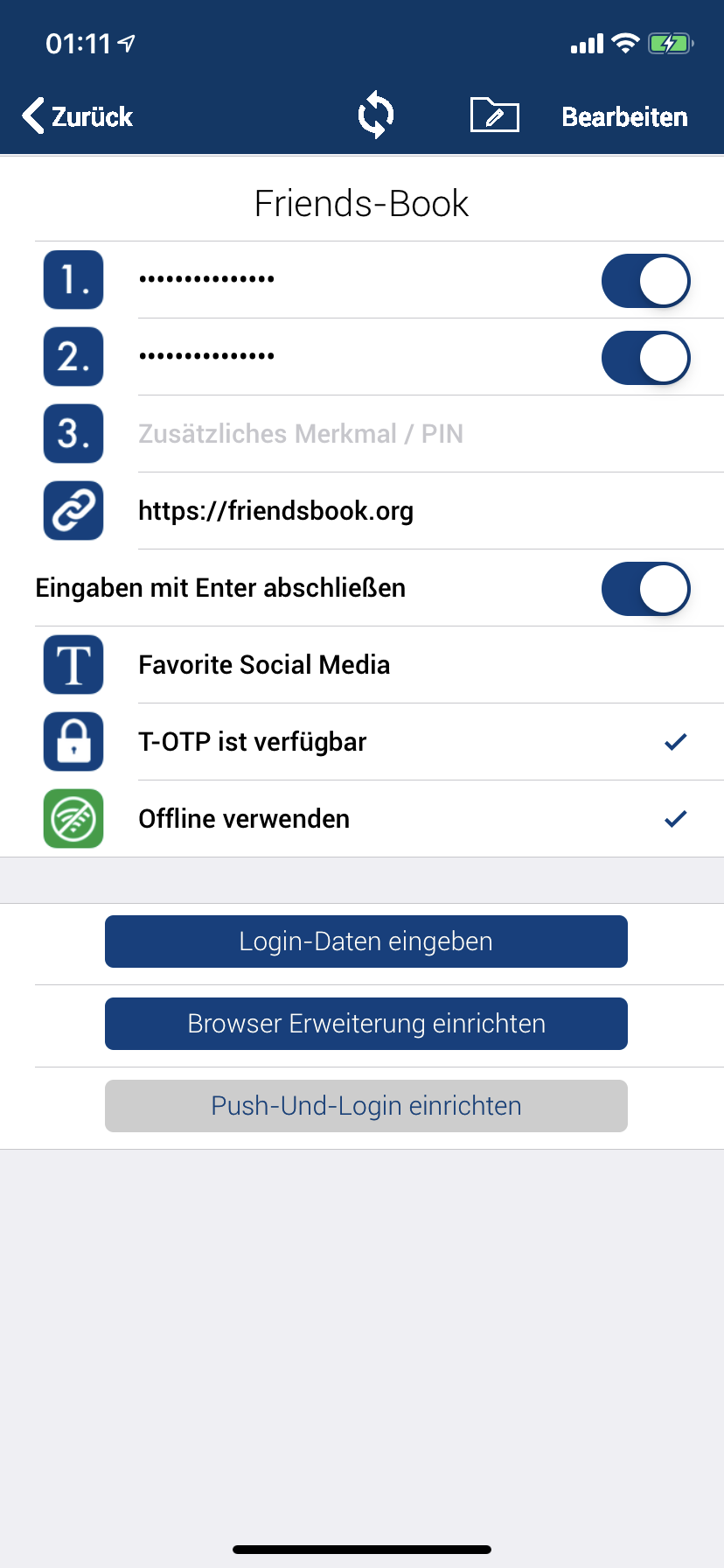 Please note: When editing the login data you will see a button above the software keyboard on iOS devices and a context menu on the right-hand side of Android devices which can be used to generate a random password. Give it a try!