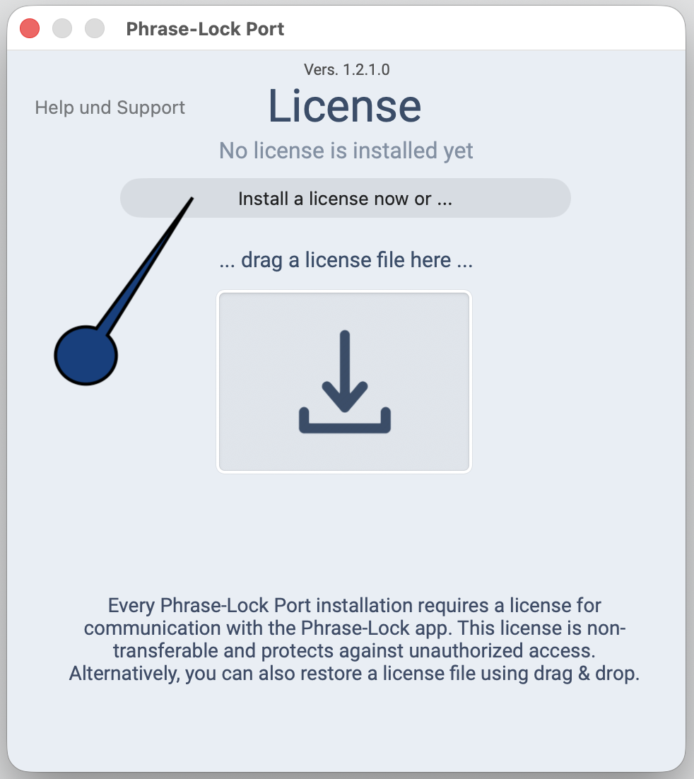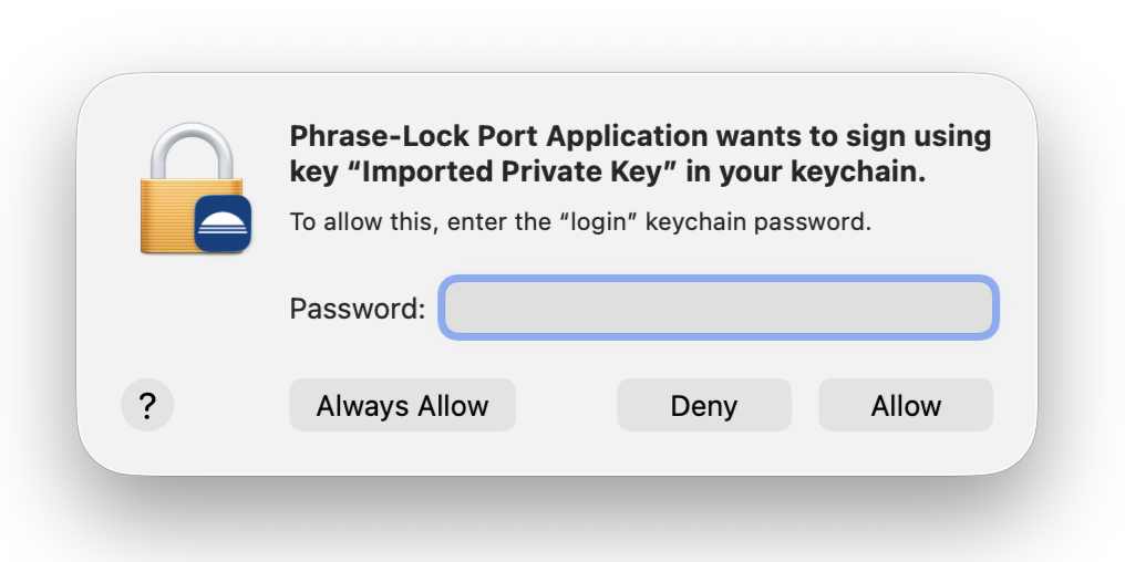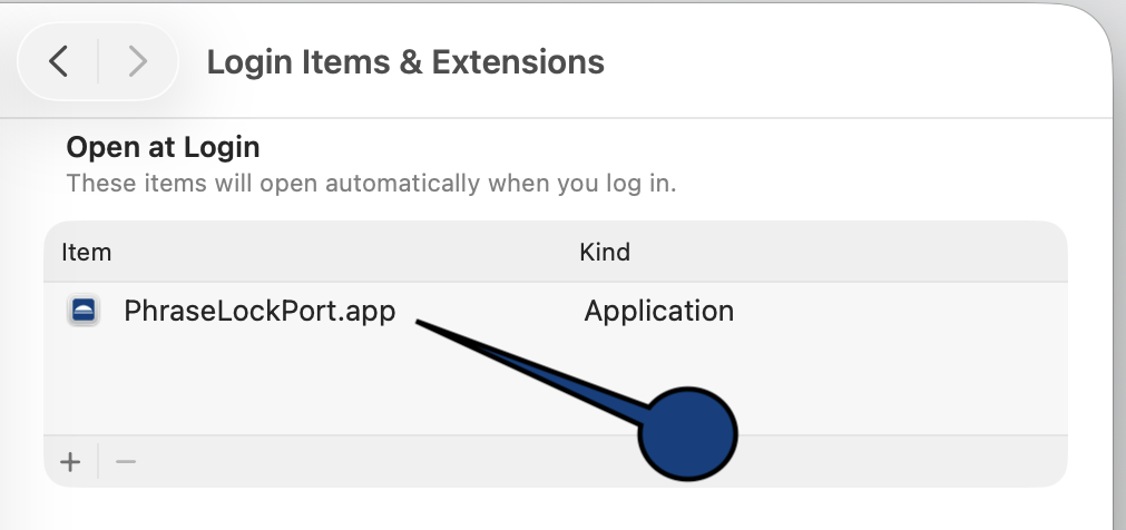 To ensure that Phrase-Lock Port is immediately available even after a restart, you should add the PhraseLockPort app to your startup items.