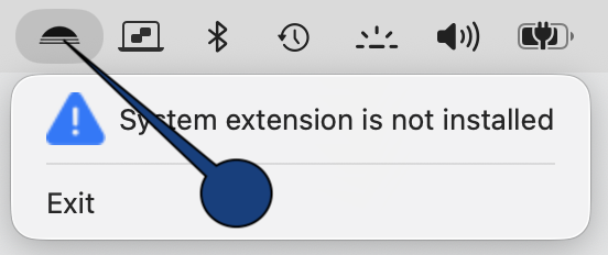 You’ll then see a warning that the system extension hasn’t been installed yet. Click the message to open System Preferences.