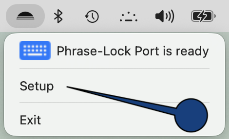 Now open the Phrase-Lock app from the Applications folder. You’ll see the Phrase-Lock logo in the top-right corner of the menu bar. Click this logo to display the submenu.