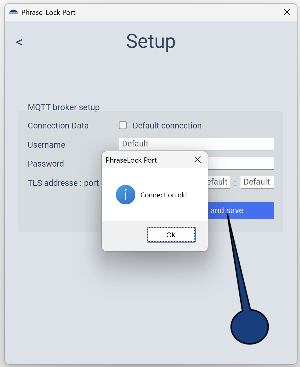 Now click the blue Test button. The message “Connection ok” should appear. Confirm the message, and we’ll move on to the final step.