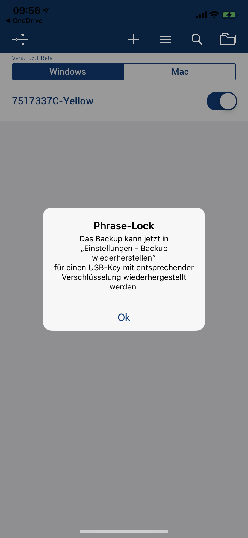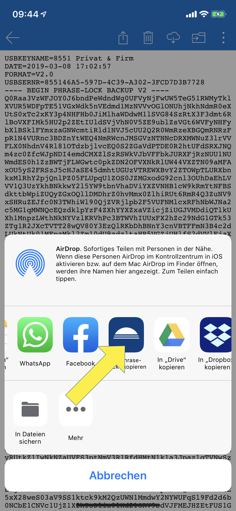 Please note: With iOS, you automatically switch to the Phrase-Lock app immediately after the previous step. With Android, the message may appear in the foreground of the file service or file app and you may have to switch to Phrase-Lock manually.